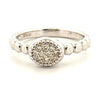9ct white gold pave diamond set oval shaped ring with beaded edge and ‘bubbled’ band. Finger Size L