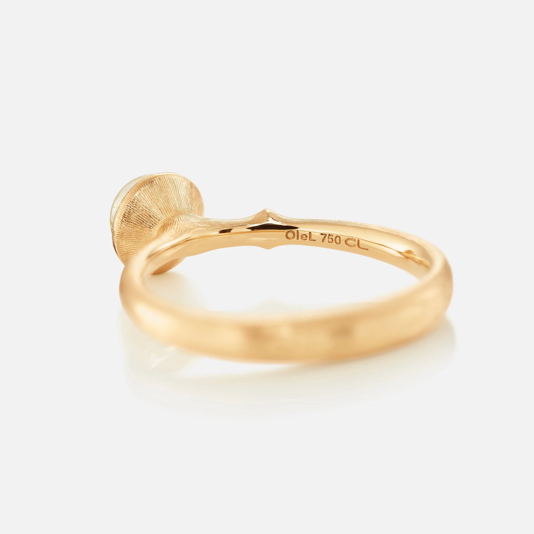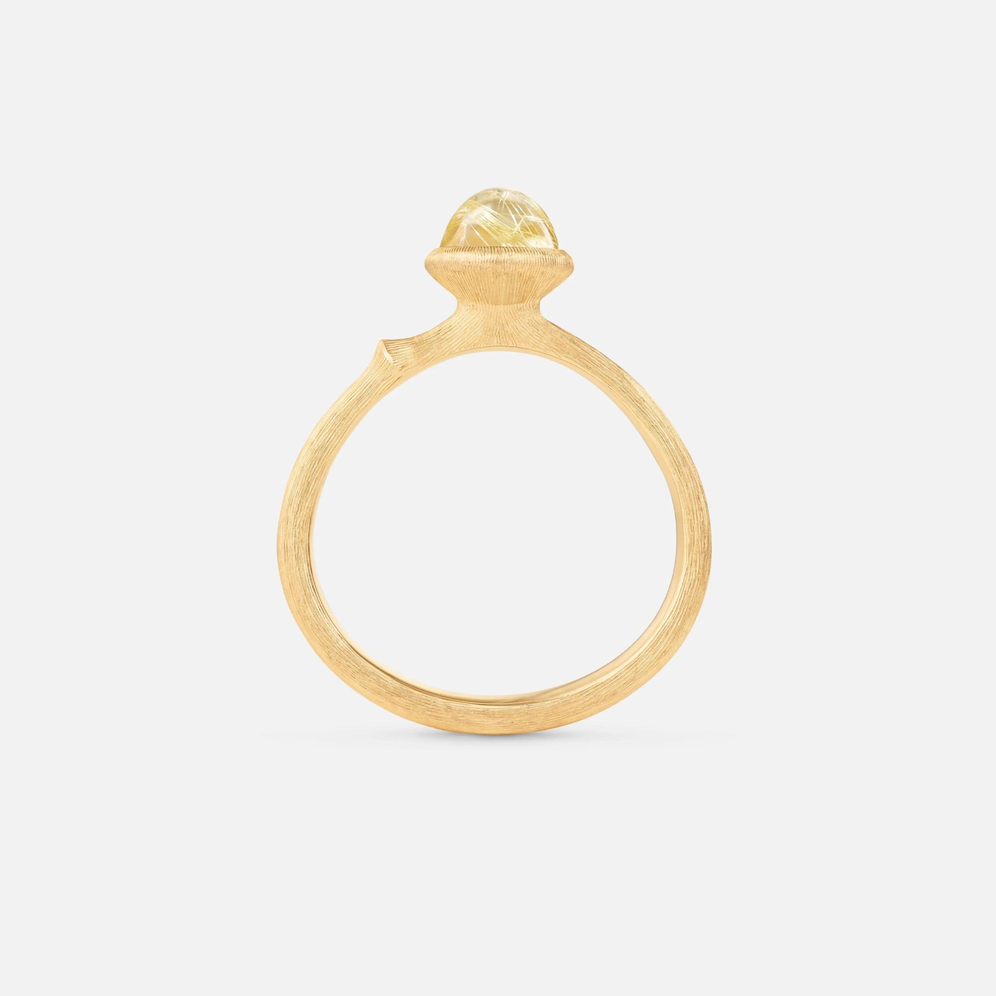 Designed by Charlotte Lynggaard, the Lotus ring, size 0, is crafted from 18 karat yellow gold and is set with a rutile quartz cabochon. Handcrafted by master goldsmiths, the visible gold surface is hand-satinised, whilst the inside of the ring has a polished finish. Part of the Lotus Collection.