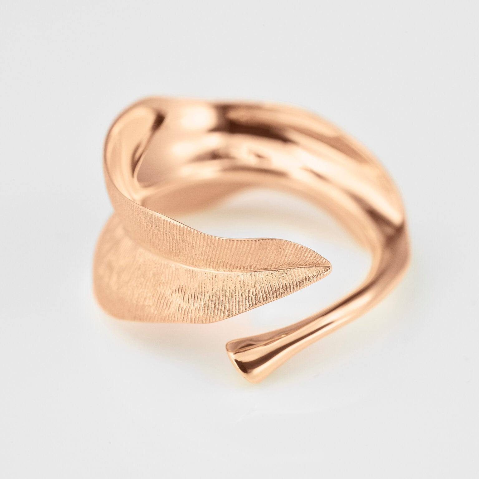 Designed by Charlotte Lynggaard, the Leaves ring medium is crafted from 18 karat rose gold. Using several different techniques and tools, master goldsmiths sculpt and finish the surfaces of the ring by hand. Part of the Leaves Collection.
