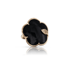 Ton Joli maintains the delicate faceting of the taglio Bon Ton, an exclusive Pasquale Bruni patented cut. The collection reinterprets the five-petals iconic flower of the Maison in new sophisticated proportions. Gems blend into a rose gold flower, wrapped in a leaf of white and champagne diamonds.