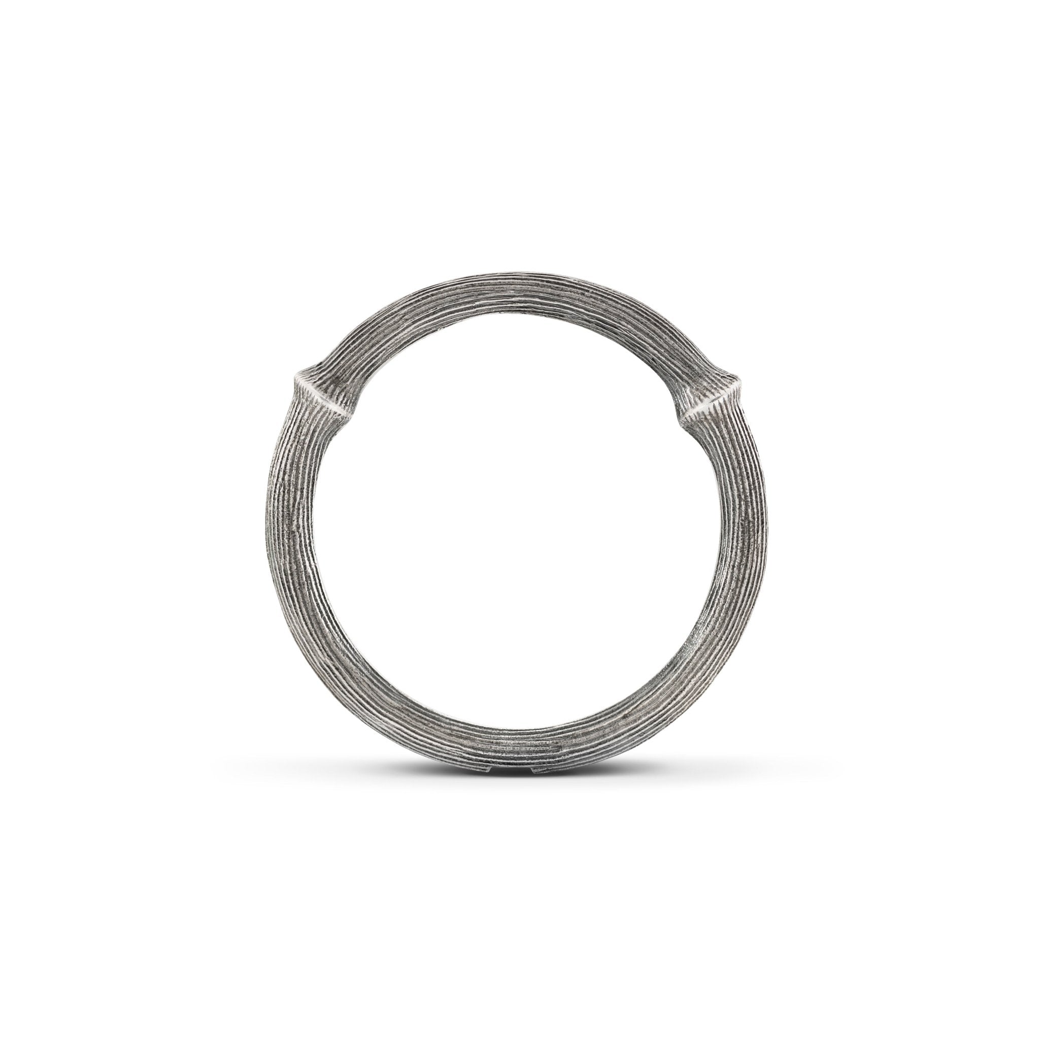 From the beautifully organic Nature Collection by Ole Lynggaard Copenhagen, the Nature Band No.2 ring embodies the brand’s signature harmony between craftsmanship and the natural world. Expertly crafted in 18ct white gold with a black oxidised finish, the design features softly textured detailing inspired by the raw beauty of tree bark.