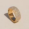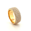 Crafted from 18ct yellow gold, this sophisticated ring features an impressive five-row pavé setting that captures and reflects light from every angle. Each of the 113 round brilliant-cut diamonds has been carefully selected for its exceptional G colour and SI clarity, resulting in a total diamond weight of 2.03 carats.