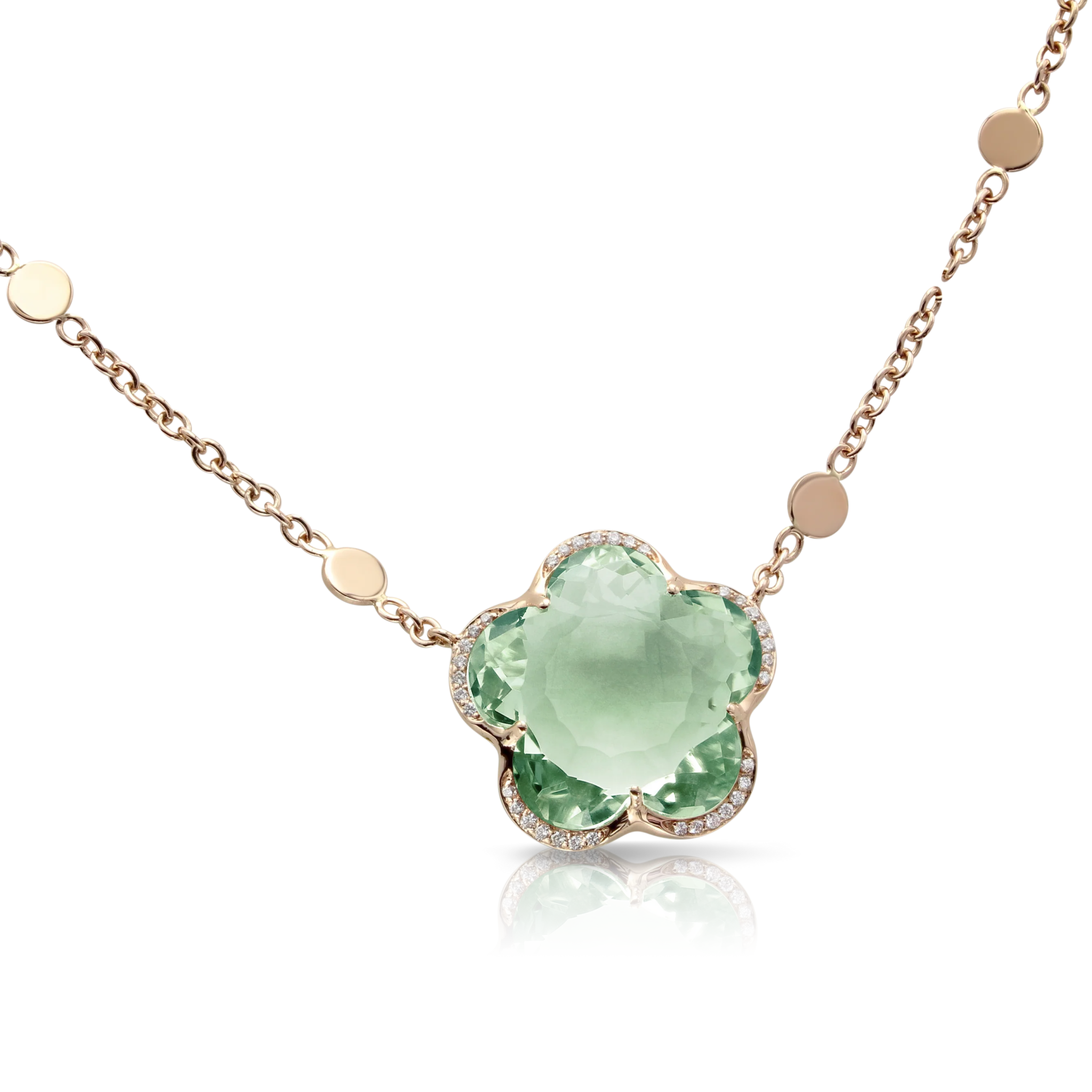 Bon Ton Dolce Vita Necklace in 18k Rose Gold with Prasiolite and Diamonds.