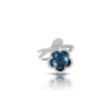 White gold and diamonds open in corollas of London blue topaz. The stone of inner beauty and truth, capable of harmonizing the woman with the universe and the divine.